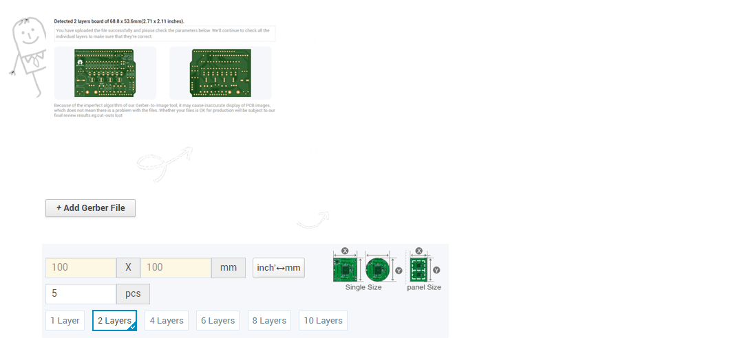 *For Gerber files this choice will not affect anything, PCB will be made using the parameters of the files.